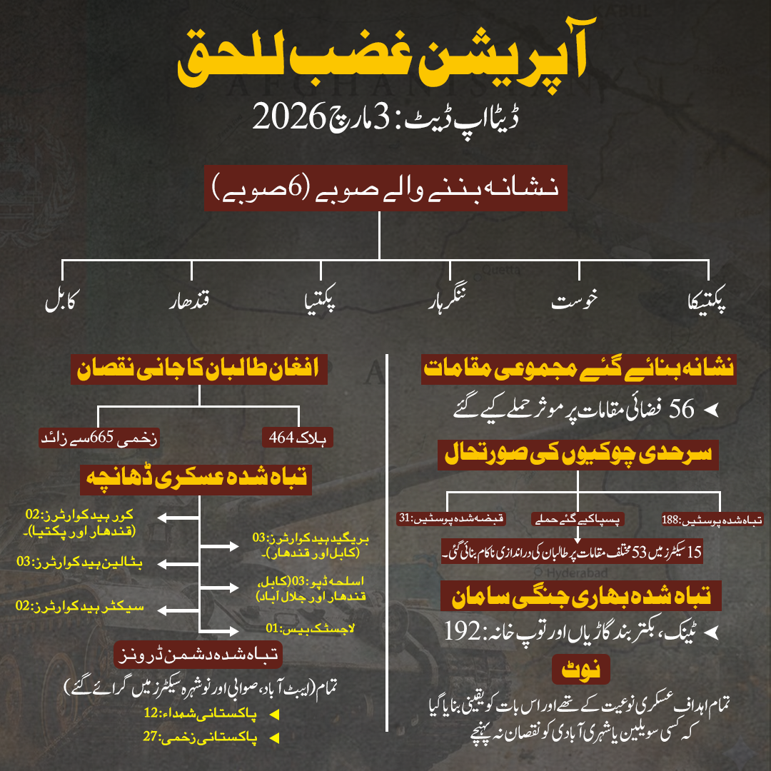 آپریشن غضب للحق کے تازہ ترین معرکے میں افغان طالبان کو غیر معمولی جانی و مالی دھچکا لگا ہے؛ 4 مارچ کی شام تک 481 جنگجو ہلاک اور سینکڑوں چیک پوسٹیں تباہ ہو چکی ہیں