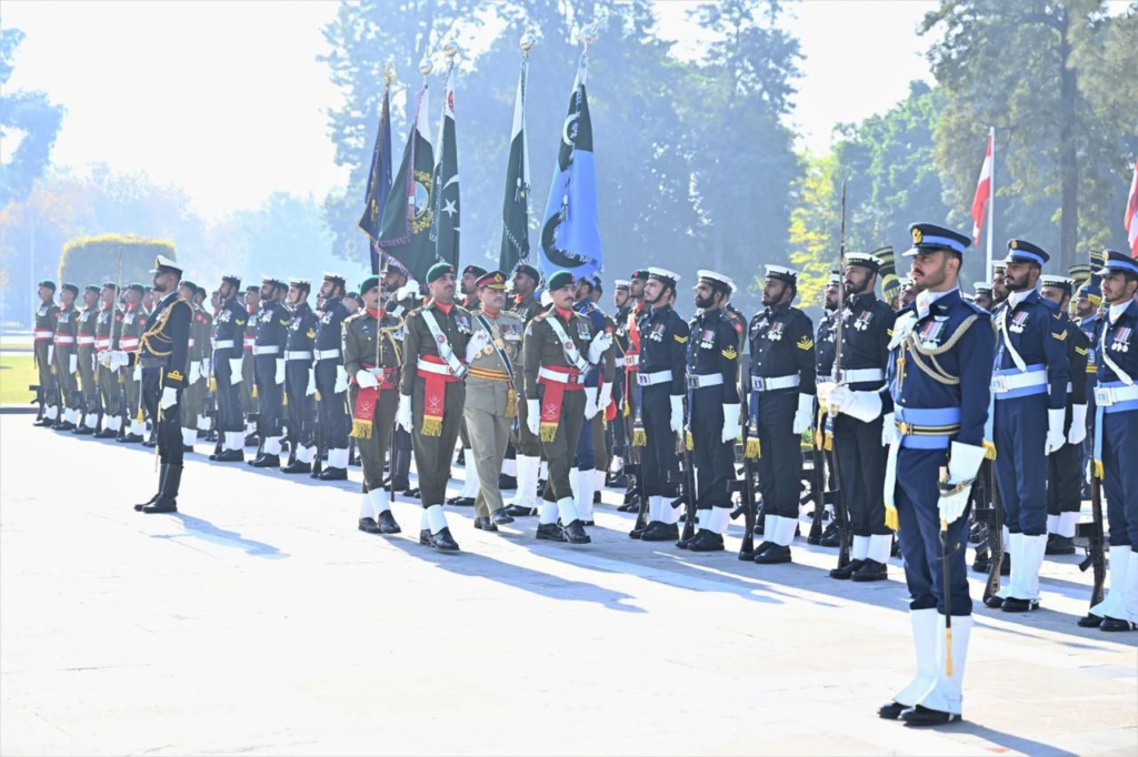 پاک فوج کے سپہ سالار اور چیف آف ڈیفنس فورسز فیلڈ مارشل سید عاصم منیر، کو آج جنرل ہیڈ کوارٹرز راولپنڈی میں تینوں مسلح افواج کے دستوں کی جانب سے ٹرائی سروسز گارڈ آف آنر پیش کیا گیا۔ یہ تقریب چیف آف آرمی اسٹاف کے عہدے کے ساتھ چیف آف ڈیفنس فورسز کی نئی ذمہ داری کے باضابطہ آغاز کے سلسلے میں منعقد کی گئی۔