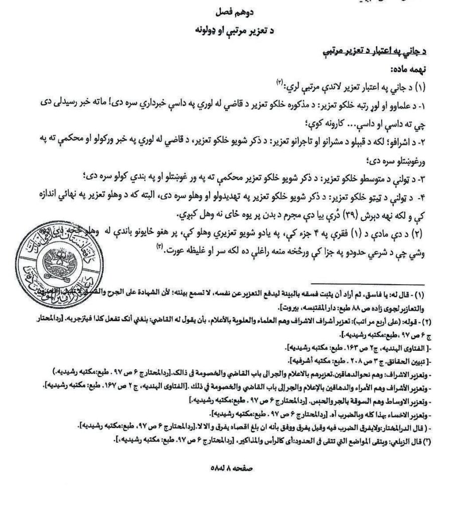 ملا ہیبت اللہ کی توہین پر 20 کوڑوں اور چھ ماہ قید کی سزا نافذ کی گئی ہے۔