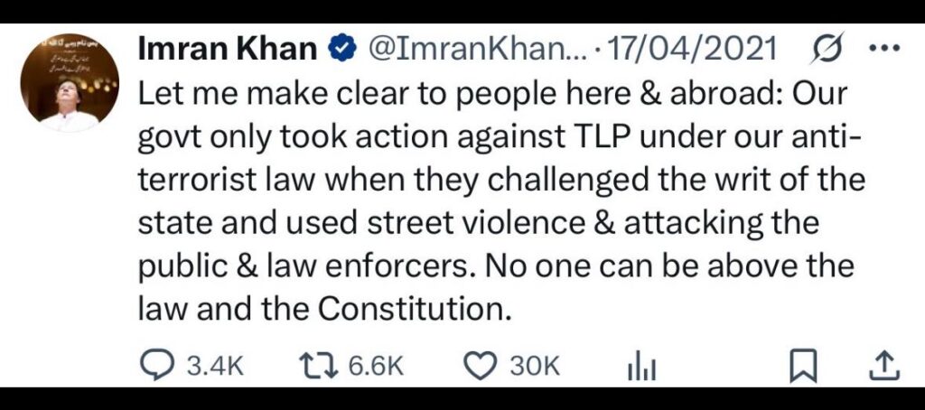 اسی تناظر میں آج مریدکے میں ہونے والا آپریشن تحریک لبیک پاکستان کے خلاف اسی اصول کے تحت کیا گیا کہ انہوں نےپرتشدد طرز عمل روا رکھا۔