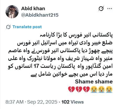 ضلع خیبر کی وادی تیراہ ایک بار پھر خوارج دہشت گردوں کی بربریت اور جھوٹے پروپیگنڈے کا نشانہ بنی۔ حالیہ سانحے کے بعد سوشل میڈیا پر جھوٹا بیانیہ گردش میں آیا کہ پاکستانی فضائیہ نے آبادی پر حملہ کیا، لیکن مستند ذرائع، مقامی عینی شاہدین اور سیکیورٹی اداروں کی تحقیقات اس دعوے کو یکسر جھٹلا دیا ہے۔