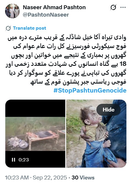 سانحہ تیراہ کے بعد پی ٹی ایم اور بعض سیاسی عناصر نے فوری طور پر سوشل میڈیا پر پرانی تصاویر شئیر کرنا شروع کیں اور اسے “پاک فوج کی بمباری” کا رنگ دینے کی کوشش کی۔