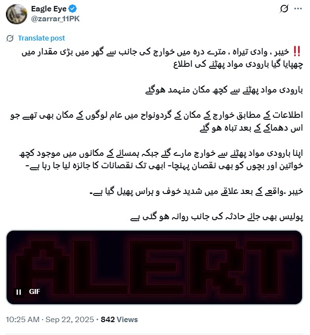 حقیقت یہ ہے کہ دہشت گردوں کے اپنے زیرِ زمین بارودی ذخائر پھٹنے سے یہ سانحہ پیش آیا، جس میں خوارج کے ساتھ ساتھ وہ عام شہری بھی متاثر ہوئے جنہیں ان سفاک عناصر نے انسانی ڈھال کے طور پر استعمال کیا۔