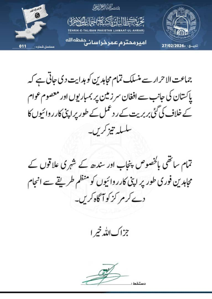 ٹی ٹی پی اور جماعت الاحرار کا حکومتِ پاکستان کے خلاف باقاعدہ آپریشنز شروع کرنے کا اعلان